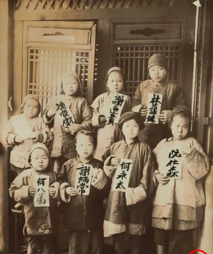 这个小道具就叫“名牌”,厚纸一张,写上“谢炳常”“何永太”之类,黑墨刚干,孩子双手抱着,像捧一张通往新日子的船票,门窗的格扇是榫卯拼的,边角磨得圆润,官差站在一旁,时不时吆喝一句“别动”,妈妈看见这张照片只叹气,说以前连名字都要挂胸前,现在孩子们有学生证有芯片卡,世道真是翻过山了。