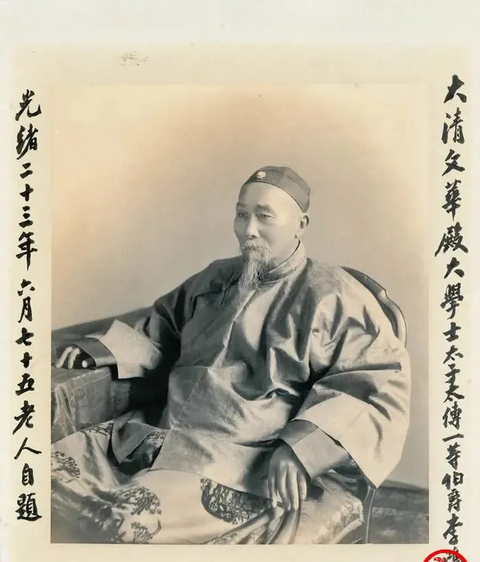 这张叫自题像,边上行书写得明明白白,光绪二十三年六月,官衔爵位一串到底,最扎眼的还是那张脸,皮面光滑得跟抛过蜡一样,我第一次看也愣了下,爷爷笑,说相片冲印能“磨皮”,老法师拿羊皮纸轻轻一抹,暗部就糊开了,皱纹自然没影了,以前修相靠手上功夫,现在修图点两下鼠标,也算异曲同工吧。