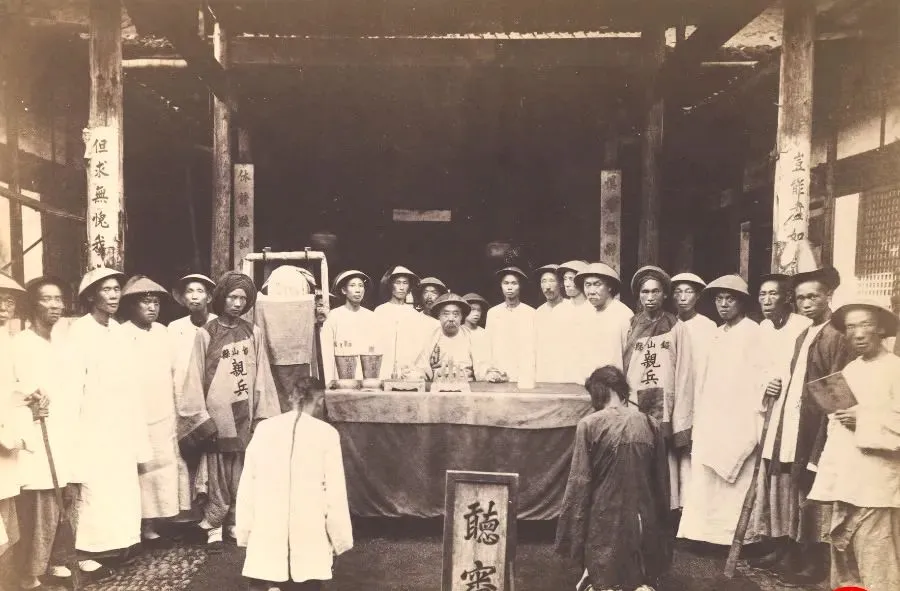 晚清老照片:李鸿章75岁脸上没有皱纹;县太爷审案,亲兵衙役助威。