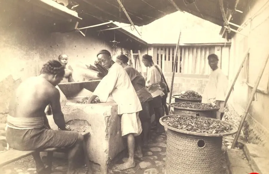 这个地方叫茶作坊,灶是三连眼的,生锅二青锅熟锅一线排开,男人们赤膊挽袖,手里的夹子翻得飞快,边上藤编的大筐里堆着青叶,热气裹着茶香往上冒,师傅用拇指一捻,听叶脆不脆就知道水分走了几成,奶奶年轻时在乡下做过茶青拣叶的活,说最怕阴雨天,火候抓不稳,叶子一“闷坏”,一整筐都心疼。