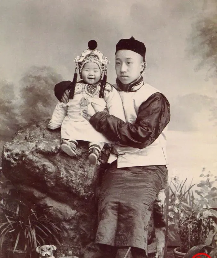 这个姿势在照相馆里叫抱景,后面是画出来的假山假树,孩子头上顶个绒球小帽,肚兜外面又罩了件坎肩,小鞋底厚得能敲响台板,年轻父亲把胳膊护在孩子腰下,眼神有点紧张,我妈看了直乐,说当年抱孩子去照相馆,掌柜一定要先擦干净坐垫,怕把锦缎弄脏,现在手机随手一拍就存云上,那个认真劲儿都散了。