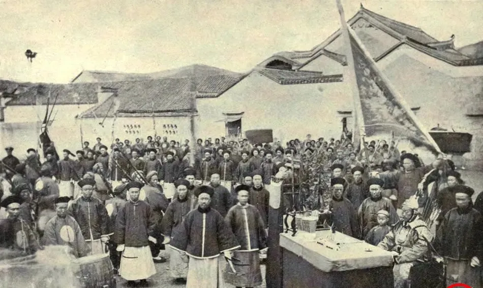 晚清老照片:武官出席活动身穿铠甲、肩挂羽箭