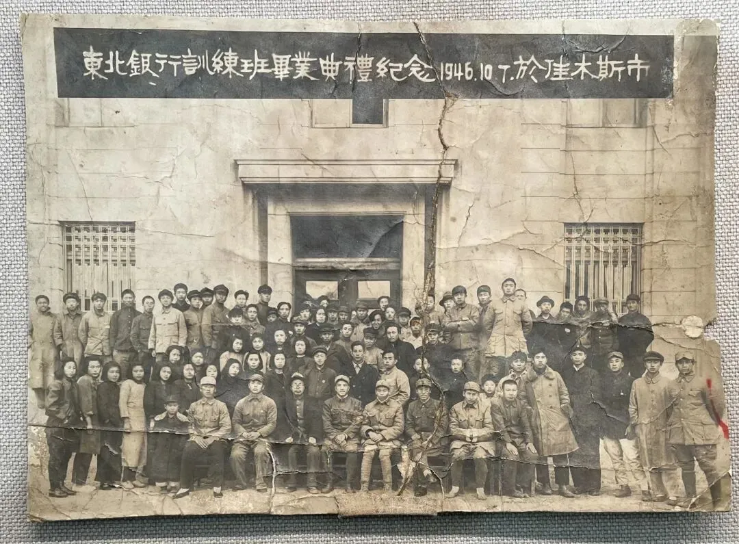 照片上方的题字“東北銀行訓練班畢業典禮紀念1946.10.7.於佳木斯市”,是最直接的历史证据,它不但明确了照片的身份和价值,更引导我们去探究东北红色金融的发展历史。