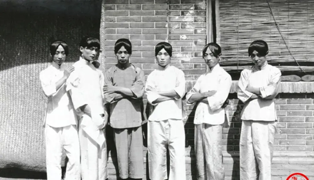 这些清瘦的青年是戏班里的旦角,头发中分服帖,眼梢挑着一点倔强,站成一排抱臂看镜头,衣服素净,袖口却熨得直溜,唱起戏来,指尖一抖就是水袖的亮相,外婆当年最爱评一句,男扮女装不稀奇,稀奇在唱念做打都像,那会儿台上没有女人,好的旦角比真闺女还俏,这话绝不夸张。