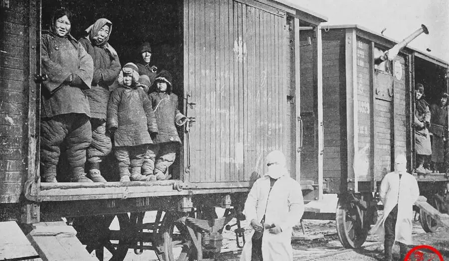 图中这一排木制滑门的棚车就是临时隔离营,门边站着一溜裹得像球的妇女和孩子,脚上棉靴肿胀,栏板缝里透风,前头穿白防护衣的医员来回巡看,车厢里简易铺板一搁,壶里得常年冒气,奶奶说那会儿“上车就是先过命”,心里怕,可也知道隔开才是正道。