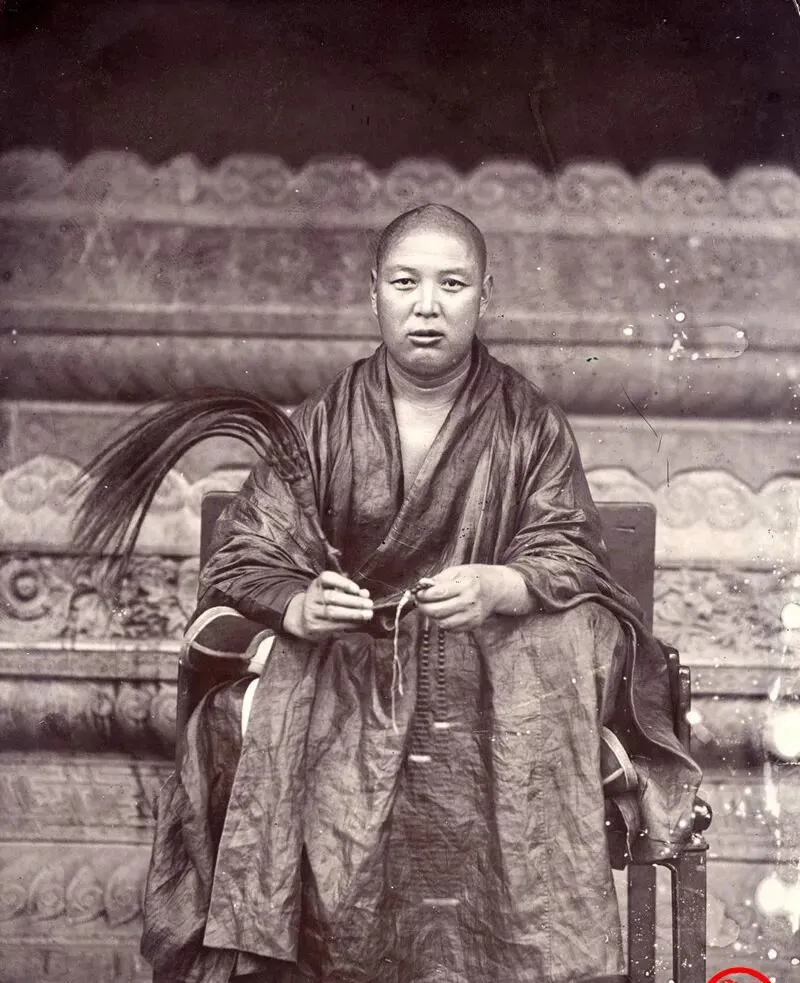 这个坐姿叫端拈念珠,袍褶垂到膝,手里拨着珠子,拂尘搁在一侧,脸上的光是柔的,神情稳得像打坐后的第一口气,乡下人遇上庙里法会,总要去烧一炷香,求个风调雨顺,求个家宅平安,信念就像这串珠子,拨到哪一粒,心就静到哪一层。