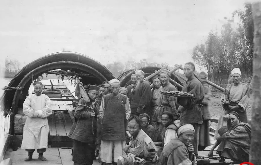 图里这一群人叫纤夫与舵手,肩上的麻绳勒出深沟,衣裳一补再补,脸被江风吹得发僵,船老大靠在一旁抿口旱烟,谁家手头宽裕能干这活呀,以前逆水而上靠肩膀,现在哪儿都是马达的轰鸣,力气活被铁家伙接手了。