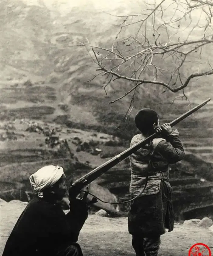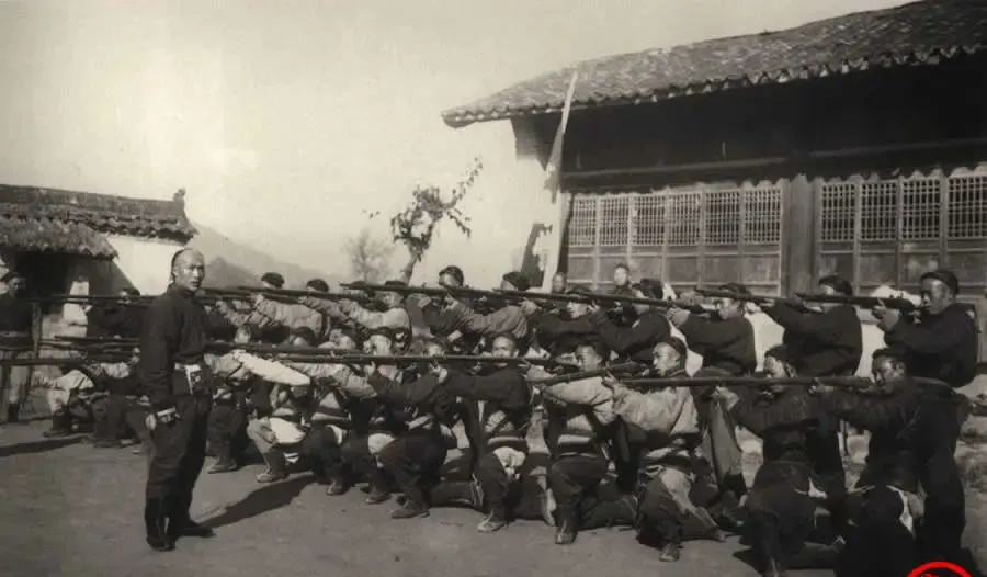 这个阵势叫巡防营排枪操练,一排人半蹲一排人立着,枪口齐伸像一排竹竿,前头教练腰间束带,手指一点,齐声应和就端起来了,旧枪身长木把重,人得前后配合,蹲的当枪座,立的瞄准,口令一落,整个院子只听见木托在地上一磕的声音,爷爷说,那时候图个整齐,枪法也靠反复操,没准星的家伙一抖就偏,现在看部队轻便得很,抬手瞄一瞬就定住了。
