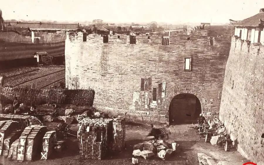 图中这道夯实的砖城门就叫城门,门洞是拱的,券面上还能看见被撕得乱糟糟的告示纸,墙根堆着条石和木箱,像等人来清点似的,老一辈说上海县城稀奇,就在于门多,常见的是四门,它偏要十门,商货进出勤快,门口的石车辘辘响个不停,那时候谁进城都得掂量一把路条,现在高架一脚油门过去,门这个词只剩地名里还留着一点回声。