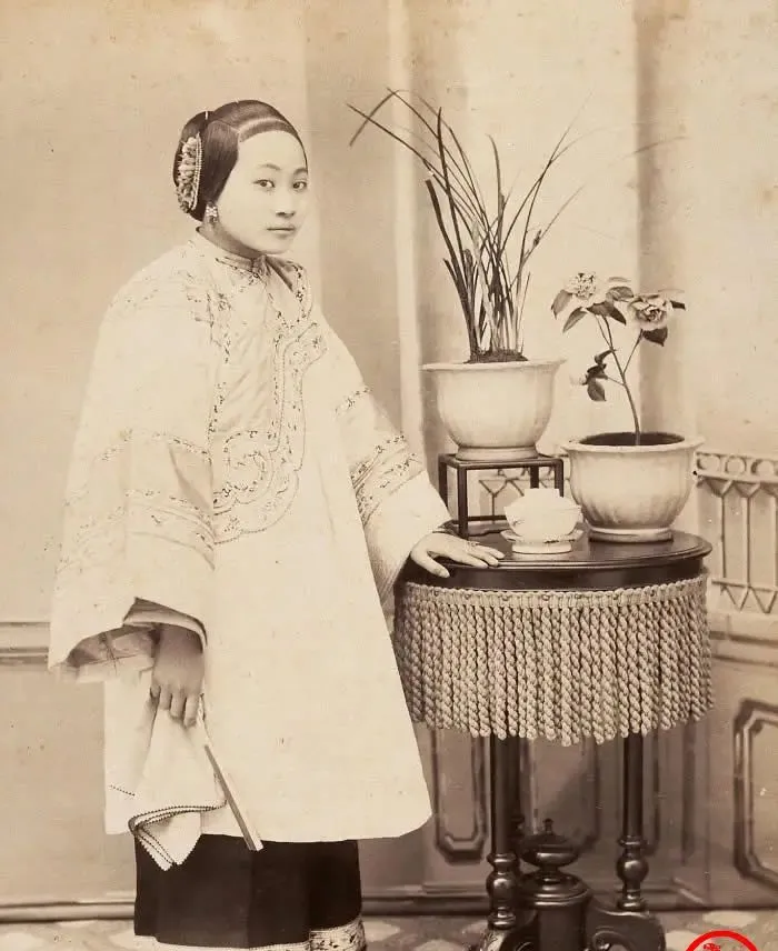 这个端着手帕的叫时兴照相,发髻抹得锃亮,耳坠圆润,衣服面料厚实,绣线沿着滚边打着回纹,姿势却有点靠前,脖颈绷得直直的,摄影师估摸着喊了别动别眨眼,结果眼神就僵那儿了,妈妈笑说那时候照相像过年,捯饬半天,一张相片要传给好几家人看。