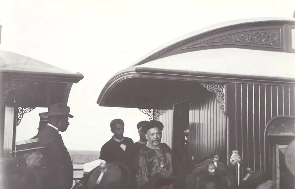 晚清老照片:袁世凯坐火车前呼后拥,男子躺在地上抽鸦片精神萎靡。