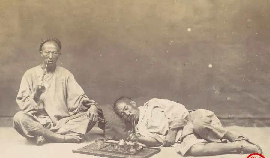 这个半躺在地上的叫鸦片客,枕头垫着肩膀,烟枪抵着火碗,眼皮像被石头压着,旁边那位坐得端正,还给他烧烟灯点火,托盘里摆着烟具一溜金属光,哥哥看了只嘟囔一句,精神全让这口烟抽走了吧,以前城里巷子口都有馆子,进去一趟白天黑夜就不分了,现在烟馆没了,换成网瘾和手机,迷住人的东西总会变个样再来。