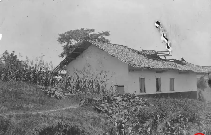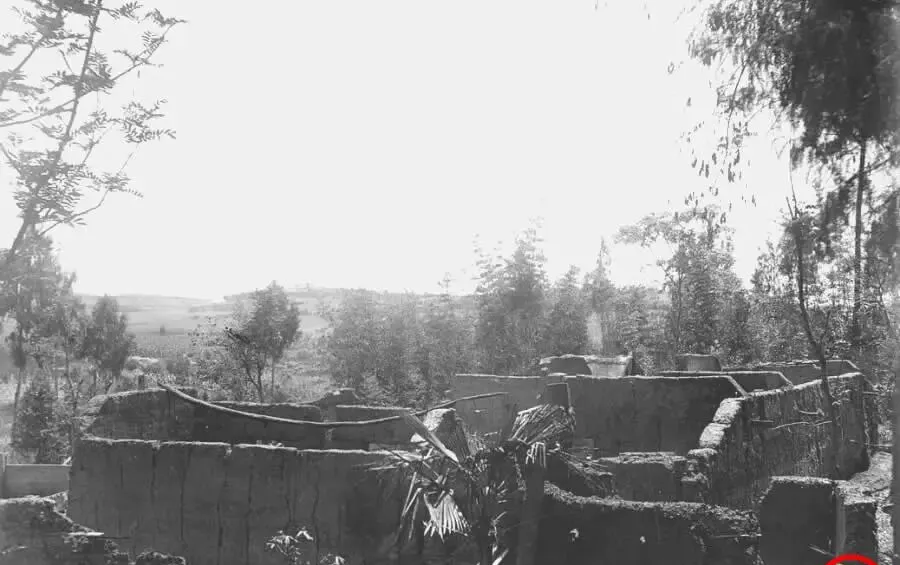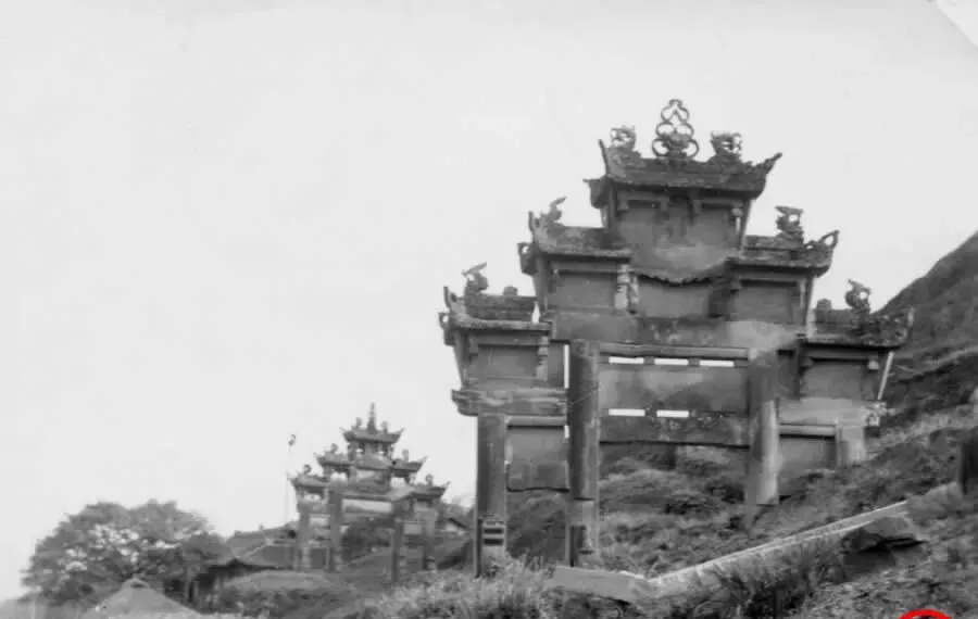 晚清老照片:白莲教支派发动起义房倒屋塌,乡间树立牌坊旌表列女。