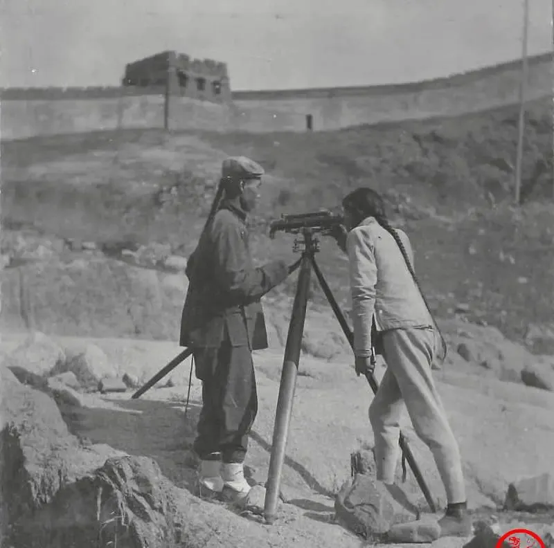 图中这三脚架上的家伙叫测量经纬仪,旁边两个拖着长辫子的工程技术人员,正对着南口一线的山石比划刻度,手上拧紧微调螺丝,眼睛在望远镜里找准据点,脚下的石块垫得稳稳的,别看衣裳土气,干的可是中国人自己设计修自家铁路的正经活儿,爷爷说那时没外援,能把线拉直、把坡驯服,靠的就是这仪器和人心劲儿,现在测绘全站仪嗡一声数据就出来了,那会儿一寸一寸对过来,可真费功夫。