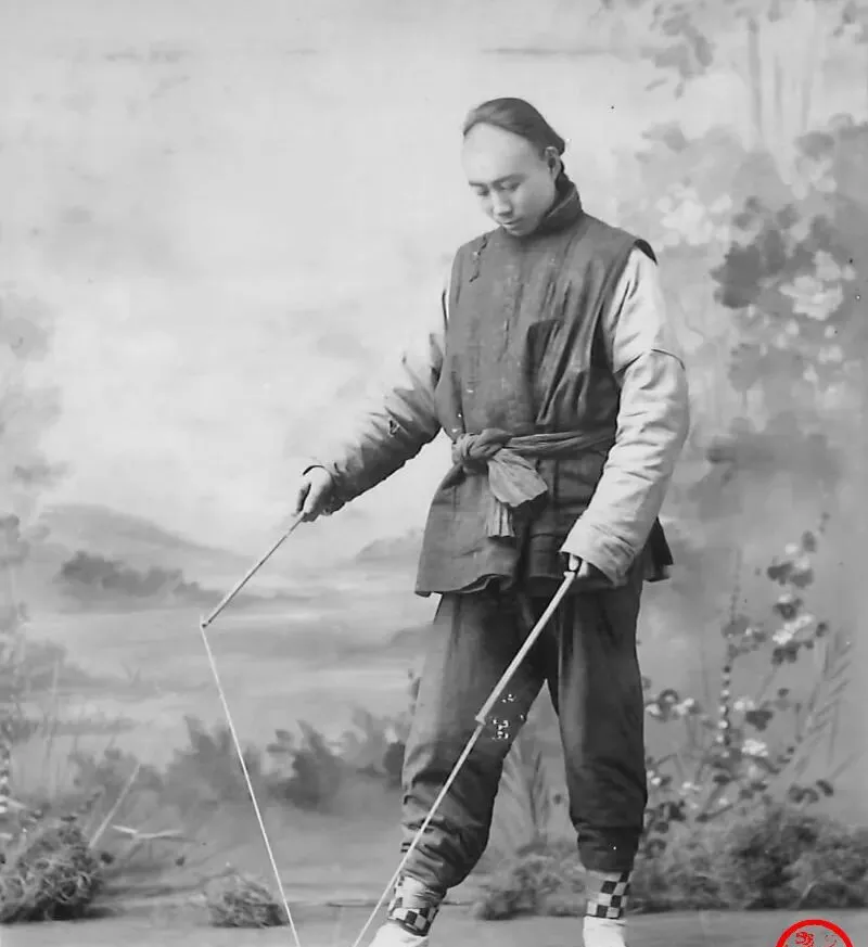 这个长个儿少年手里握的叫空竹,两根竹竿一抻一收,轮子在绳上嗡嗡叫,抛高了再接,肩一沉就稳住了,小时候我也学过两招,冬天袖口里塞着棉花,手不太灵活,一不小心就把空竹摔出院外,隔壁大爷探头喊,别把人家窗纸给捅了。