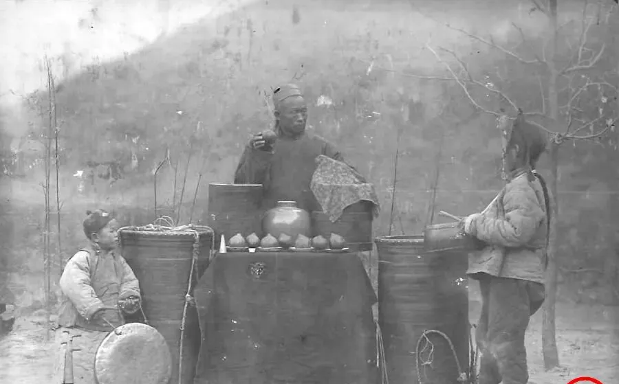 这个摊子是卖糖茶点的,大缸里热乎乎的,蒸汽往外冒,小碟小碗一溜儿摆开,孩子掂着铜钱问能不能再多添一口,掌柜的笑着把勺子往里舀深一点,旁边小伙伴拍着竹筛等,等会要分一块粘乎乎的年糕,那股甜味顺着冷风直钻进鼻子。