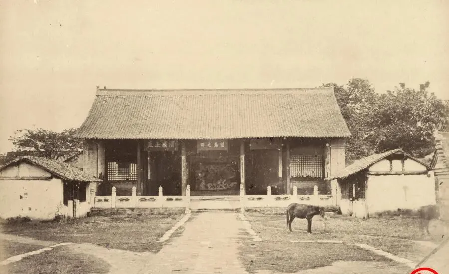 这方规矩的建筑叫衙门大堂,三开间挑着木柱,屋脊压着灰瓦,正中高高挂着匾额,写着清廉正直和慈惠之师,门前一条直直的砖路延进来,左边空地上拴着一匹小马,像是等人问话时被随手系住的,爷爷说衙门门口最怕踩到台阶上的阴影,心里打鼓,现在我们办事上网点点就行,少了威严也少了拖沓。