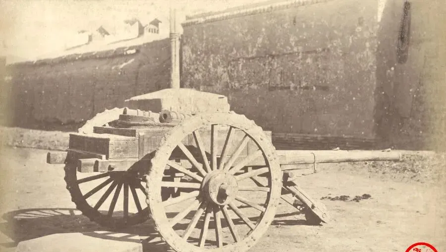 图中这排整得笔直的队伍叫炮队,旗杆后面肩披甲牌的兵丁一字排开,前头四门短身铁炮趴在木轮架上,炮口黑洞洞朝着前方,火药箱方方正正摞在旁边,鼓点一落全队跟着吸气,像一口气给憋住了似的,外公说那时候练兵吃的是苦,打的是真仗,风沙刮脸像刀片,嘴里全是沙子,现在我们看军事展示讲究科技含量,可这张照片里透出来的那股子军容整肃,别的花里胡哨比不了。