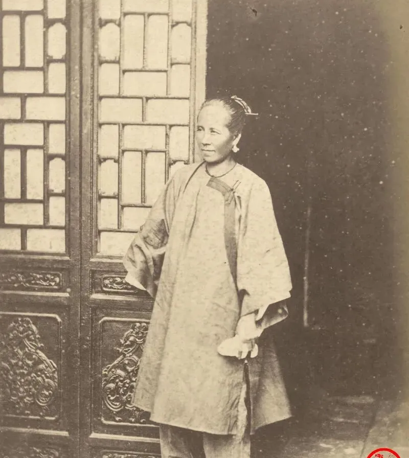 这位站在花格门前的妇人叫女仆,宽袖长衫垂到膝盖,裤脚把脚踝收得紧紧,手里攥着一只绣花鞋,三寸金莲让她站得微微侧着身,耳坠是细长的银条,眼神不躲不闪却有点辛苦,妈妈看了嘟囔一句,漂亮是漂亮,疼也是真疼,以前她们一天要做的活不少,端茶送水洗衣做饭样样来,现在家务有洗衣机有扫地机,人也更自在了,这一进一退之间,像两张日子的脸。