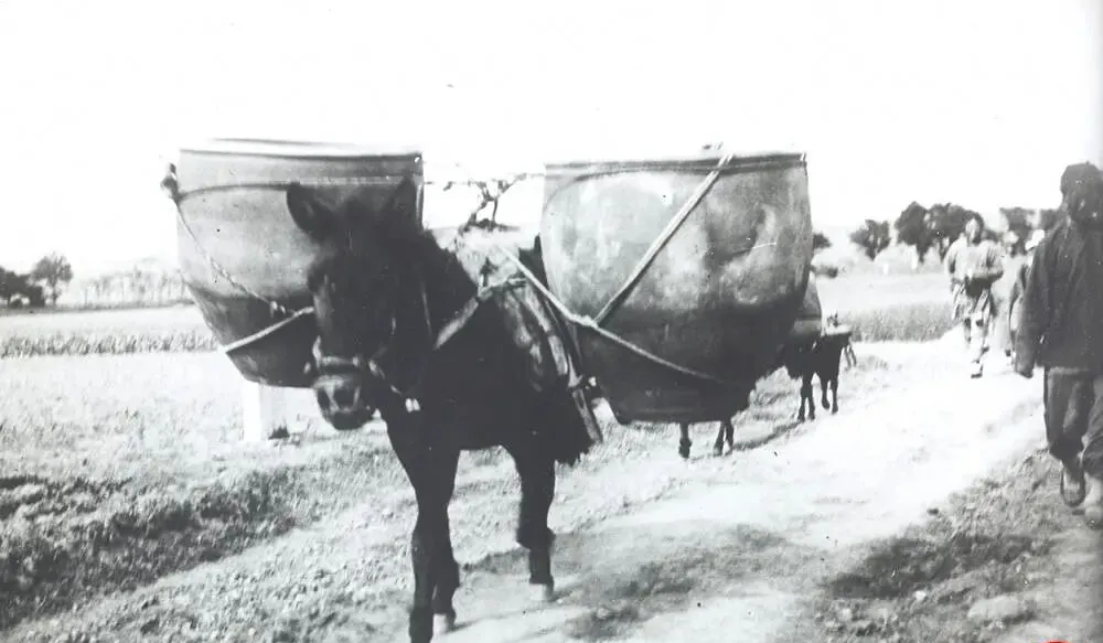 这个法子叫驮缸走水,木架横在驴背上,两边各悬一口大缸,缸口朝天,用麻绳十字交叉勒住,赶路人一手提缰一手扶缆,走土路稳稳当当,爷爷说,老北方缺水,谁家要舀井里甜水,就得这么来回跑,换到现在,三轮车、电动车一嗖就过去了,那时没这些,有的是巧劲儿和办法。
