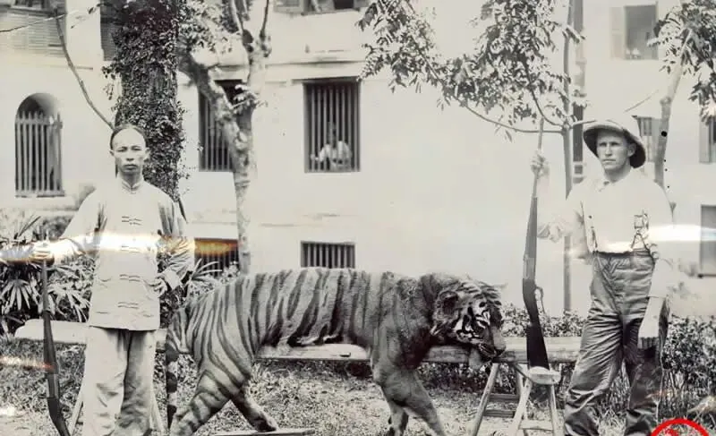这张最让人心里打鼓,地上躺着一只华南虎,纹路一圈圈贴着肋骨,旁边两人各持一支长枪,木托发亮,站姿挺得直,树影投在墙面上,静得很,左侧的中国猎人脚边放着套索和砍刀,右侧的洋人帽檐很宽,脸上看不出什么表情,妈妈叹气说,一张照片能把一种动物的命运定格,以前把虎当猎物,现在只想在山里多留它一条生路。