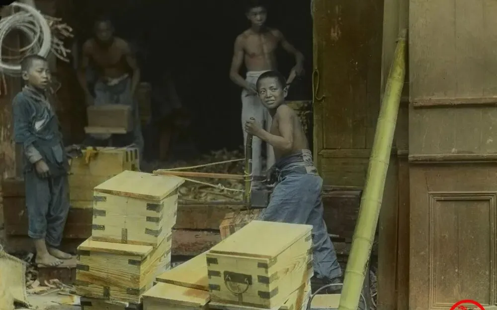 这个场景一眼就懂,门口堆满新箱子,角上钉着黑铁包角,里头的孩子赤着上身,汗水混着木屑,手里拽的是麻绳拉锯,吱呀吱呀响,师傅在后头吼一声,小手就得跟上,午饭呢,多半是一碗烂糊面,蹲在门槛上呼噜两口接着干,我看着心里发堵,妈妈说你现在喊累,想想人家那时候,童工不是词,是日子。