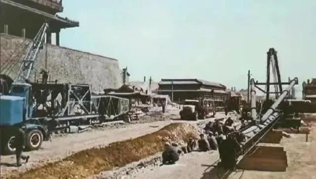 ▲ 1968年,正阳门城楼前,地铁2号线地面工程正在施工