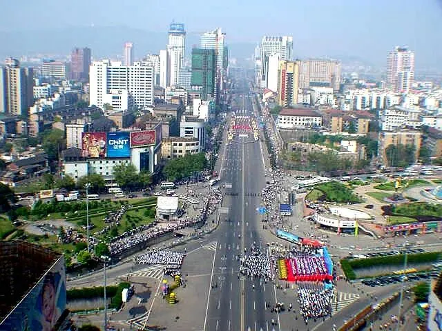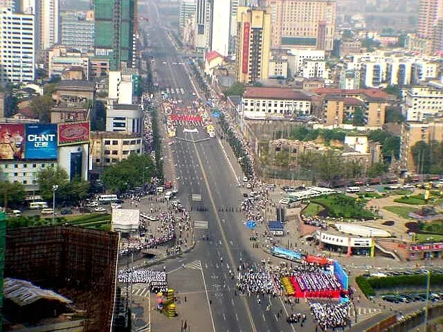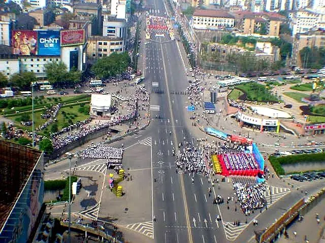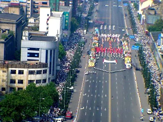 上午8时,30多台彩车花花绿绿,从湘江路拐上五一路,沿着五一大道往火车站方向慢慢游,浩浩荡荡,高空观之,甚是壮观!