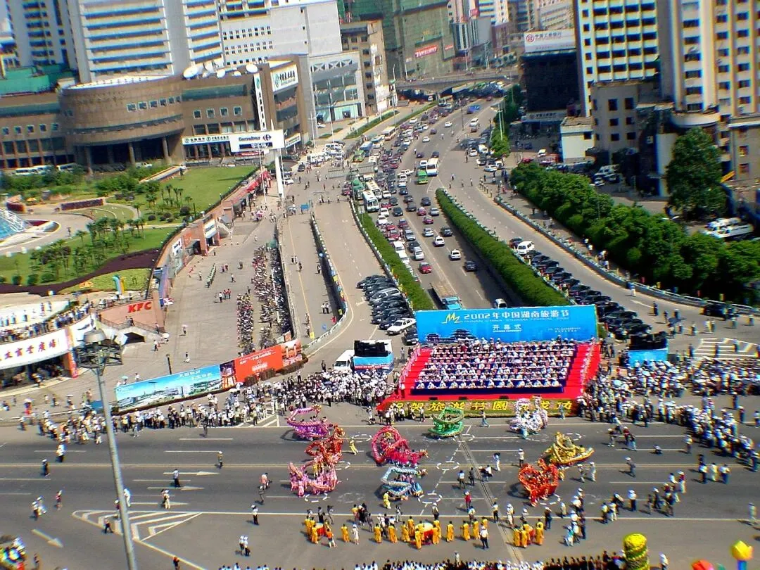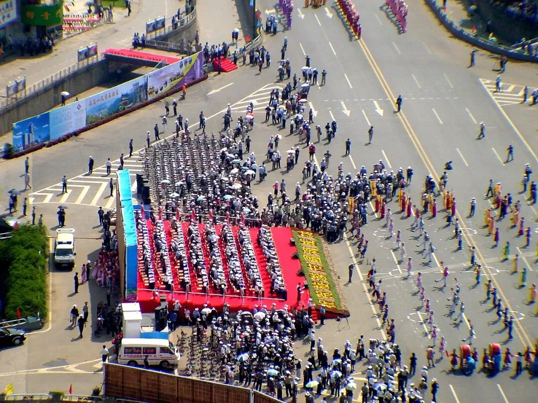 开幕式的主会场设在五一路与芙蓉路交会的立交桥上,搭了个观礼台,领导和嘉坐在台礼台上观礼,市民则沿途围观!