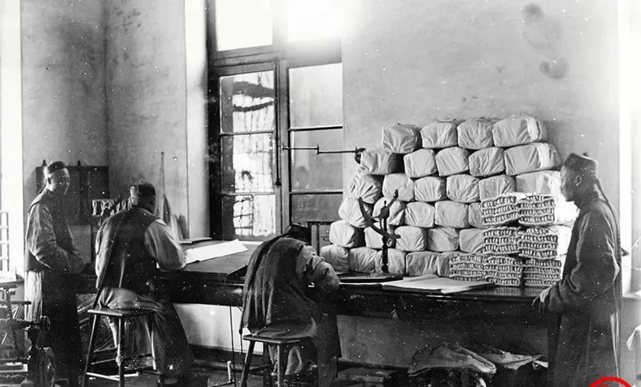 这堆得齐齐整整的是棉纱包,麻绳勒着肚子,秤杆立在案上,伙计弓着背在记账,窗子高,光打下来一片亮,听老辈人讲,纱厂里规矩多,手得干净,烟不能叼,怕火星点着,那时候靠的是手劲和章程,如今一台机子嗡一响,万件出库。