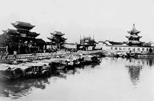 1910年,夫子庙与秦淮河里的画舫。杉江房造/摄。