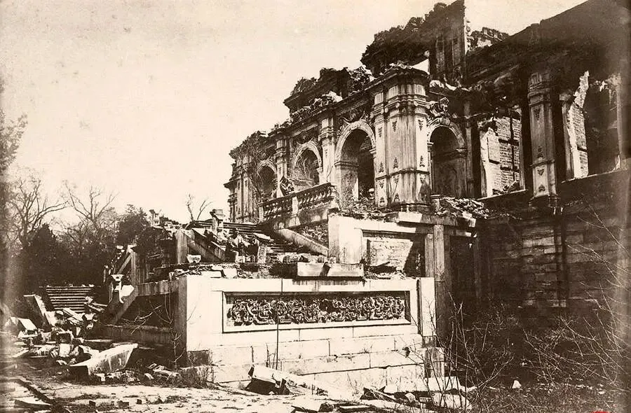这个残破的拱券叫西洋楼遗址,石柱肚子上还留着卷草纹和沟槽,台基护栏斜塌着,缝里钻出枯枝,听长辈讲那年兵火一过,富丽场面就剩下空架子,后来人再去,只能在断垣间想象流水喷泉的声音。