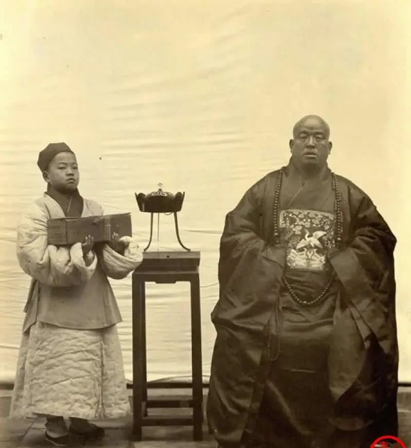 这个法衣宽大的叫僧袍,胸前那块绣着禽鸟的补子格外显眼,边上小侍者捧着经匣,木匣棱角分明,手指都勒出印儿来,父亲看照片时嘀咕一句,这派头不小啊,礼器摆在中间,香案空着人都不敢大喘气。
