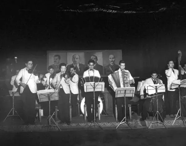 1946年3月,沈阳,日本乐团为苏联红军舞会伴奏,所有的女舞伴都是中国和日本女孩。