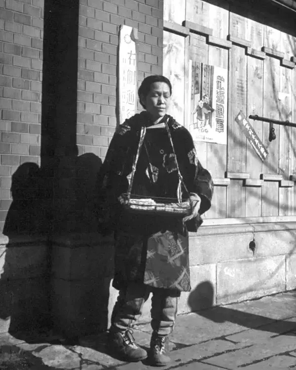 1946年3月,沈阳,一个贫困的日本妇女正用托盘销售香烟,没人知道她的未来。