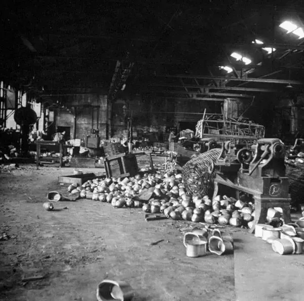 1946年3月,沈阳,这是原来的一家中国人开办的陶罐厂的车间内部,它同样遭到苏联人灾难般的抢掠,无法恢复生产。