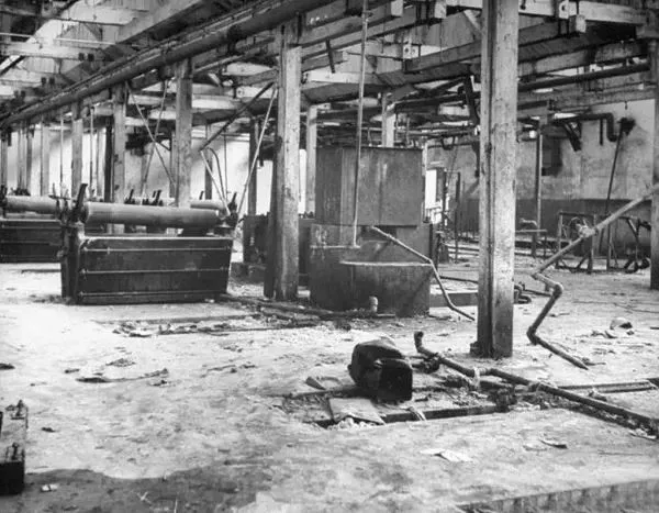 1946年3月,沈阳,已经被苏联人抢掠一空的一家大型工厂。
