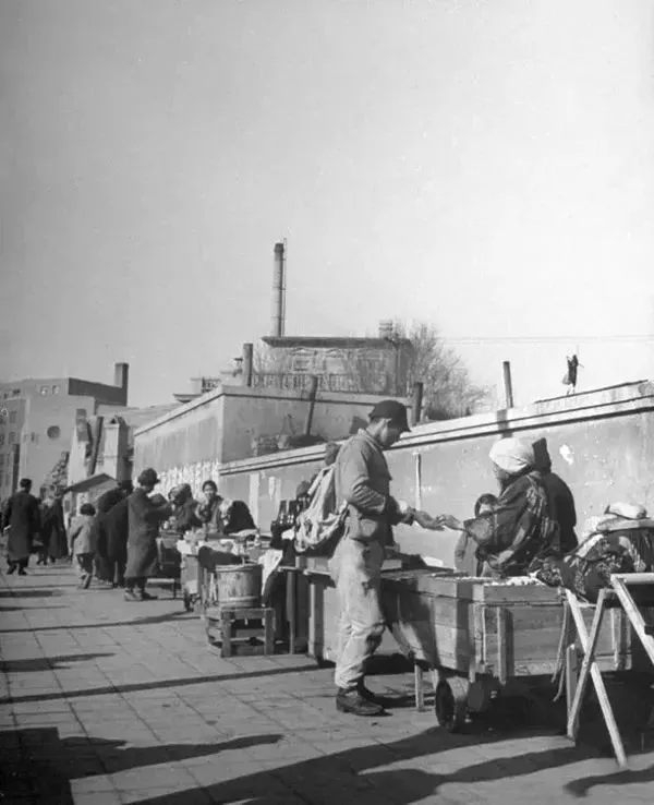 1946年3月,沈阳,一个日本妇女正在街头变卖她的物品。