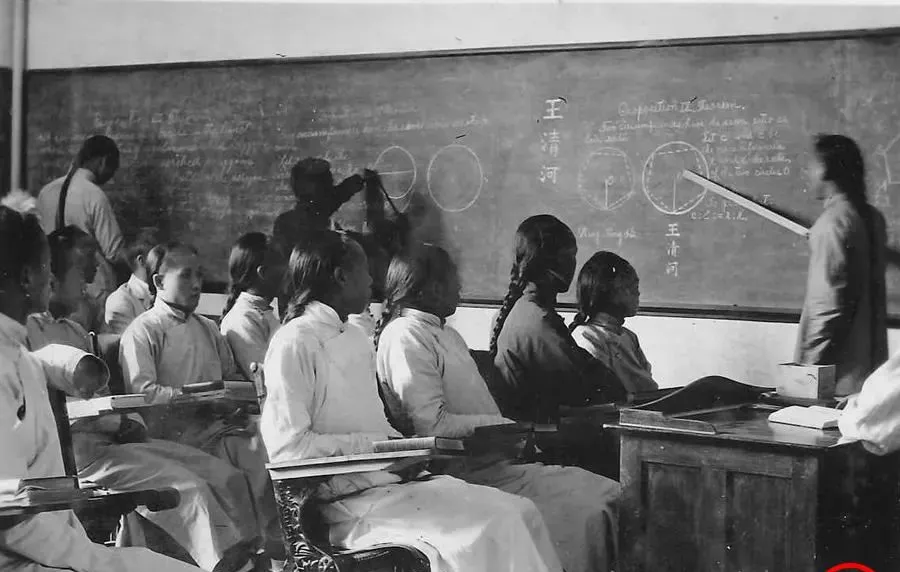 这屋子可真挤,满满一屋长辫子,靠窗一排油灯架子亮晶晶的,讲台上的老师靠着靠背椅说得慢,底下人记得急,袖子里的小抄不时探出来看两眼,以前课堂上多是抄笔记,现在投影一扫就能带走,节奏快了,人却容易分神。