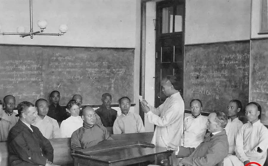 这个屋里开的是教务会,木桌正中摆着讲稿,墙上黑板写着一行行外文字母,几位先生围坐,领头的站着说,神情既严肃也兴奋,大概在商量课程和学规,旁边年轻老师眼睛亮亮的,像是想把新法子塞进每一节课里,以前一纸公文要抄好几份,现在邮件“嗖”地一下飞到每个人手里,速度快了,讨论反倒容易散神,这些老照片提醒我们,慢下来,也许更专注。
