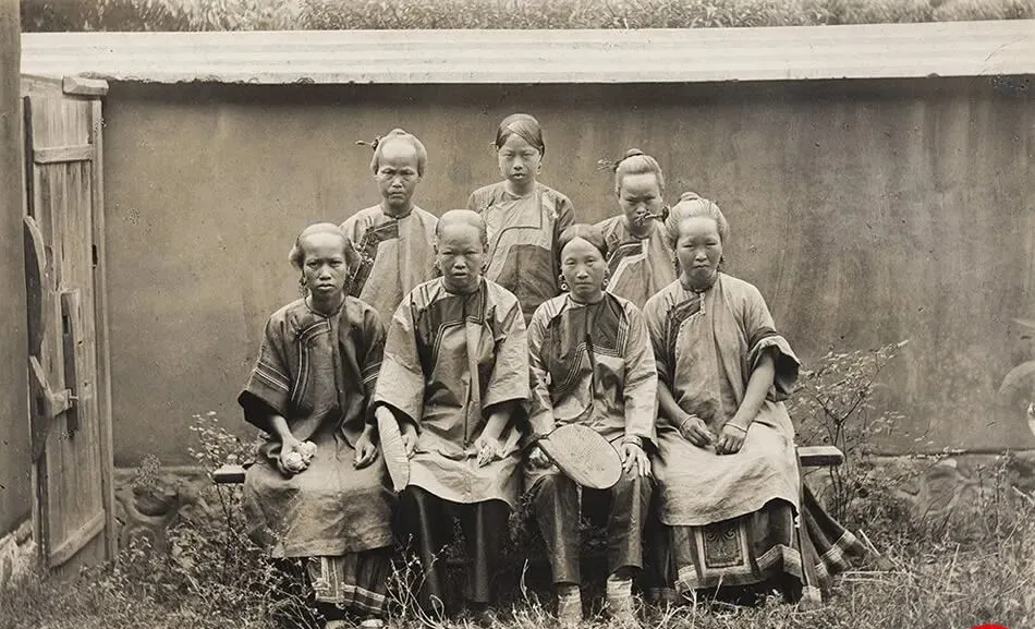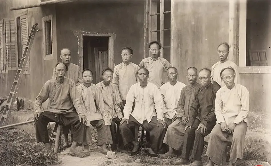 这些穿直裾的阿姐叫女病患留影,有人手里捏着小团扇,有人抿着嘴不肯笑,袖口绣线细细密密,布料是土布打浆后的光,坐在前排那位下巴上有旧疤,像刀口却又圆润,故事不肯全说,我们也别硬问,照片替她们把那段疼痛省了几句。
