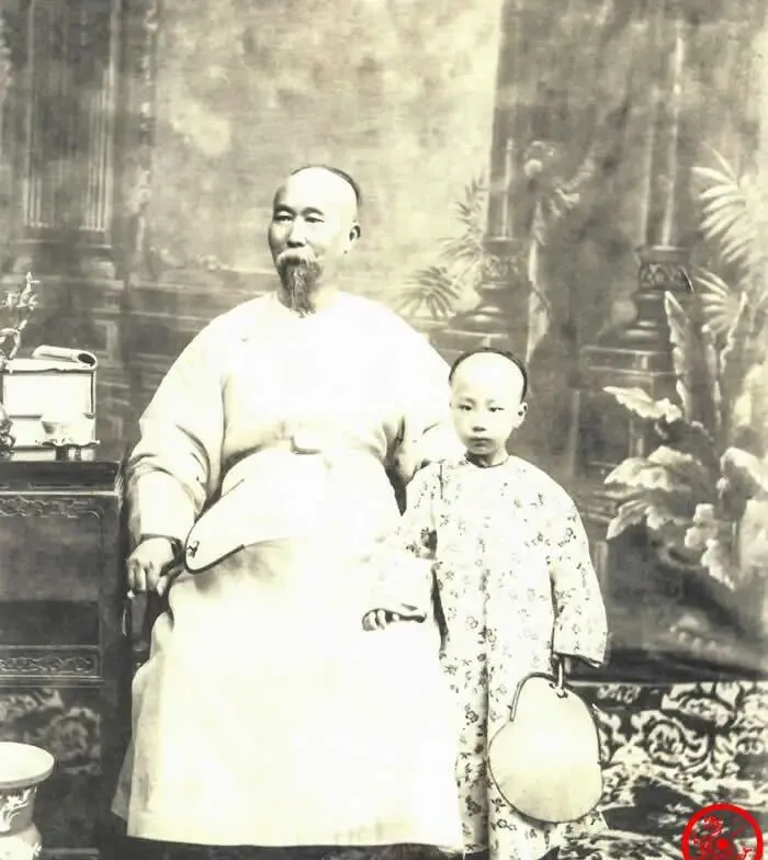 晚清老照片:直隶总督李鸿章身高1米83,与孙子合影尽享天伦之乐。
