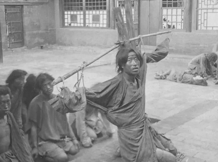 这个木家伙叫刑枷,横担像一根粗檩,前头再拴木板卡着人脖子,身上衣裳破到看不出原色,头发打绺,眼神空得慌,爷爷说衙门口的苦刑最怕长时间,挨的不光是肉疼,更是渴和饿,那时候有罪没罪,一根条子一句话说了算,现在讲证据讲程序,挨骂归挨骂,总不至于把人晒到脱皮。