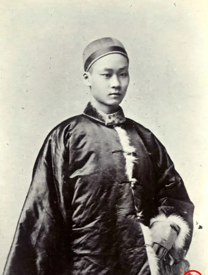 这身行头叫冬季礼服,面料发亮,袖口缀毛沿,站姿直,目光细长,照片上看着挺体面,可那会儿一到学校就得换西装,领口硬硬的,打起领结才让进课堂,之前有人不愿剪辫子,磨叽了半学期,后来自己一咬牙咔嚓一下,倒也利落。