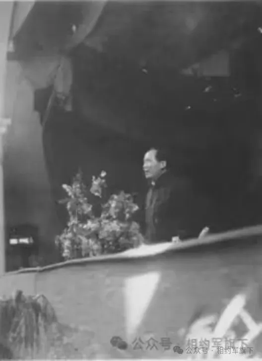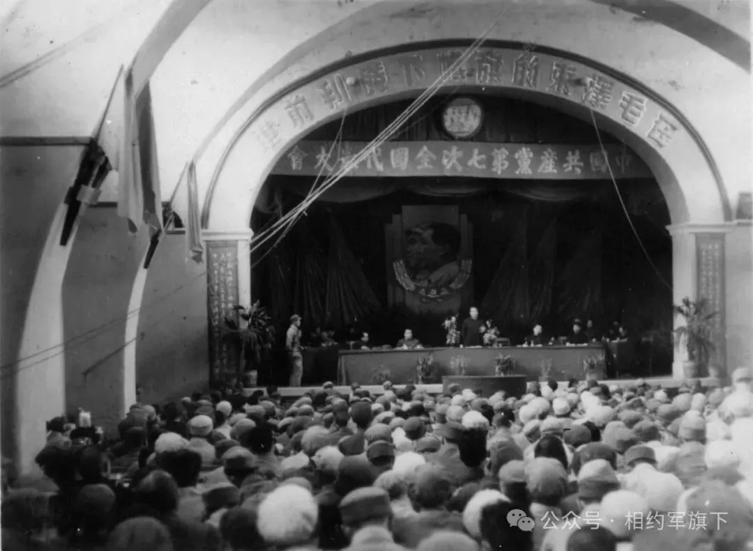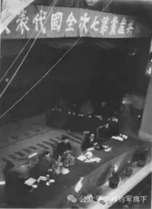 毛泽东、刘少奇、周恩来等中央领导人在中国共产党第七次代表大会主席台上