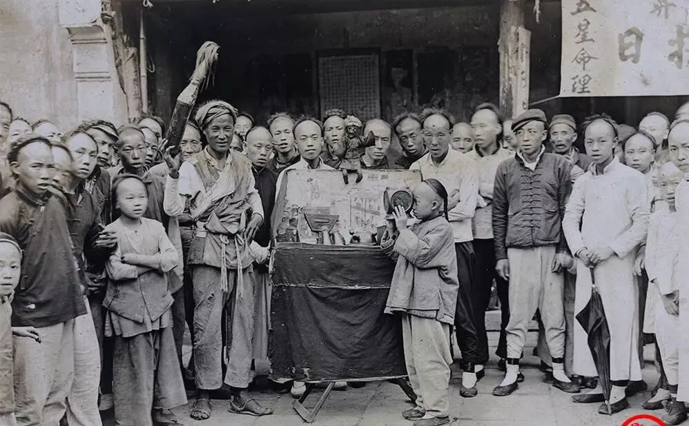 这玩意儿我们那儿叫看画片匣子,木箱子前面开了小洞,孩子把眼睛凑上去,里头是换景的画轮,手摇一摇,画面就走,旁边的人围成一圈,像现在的VR一个理儿,不过更热闹,喊一声开场,围观的立马多了几排。