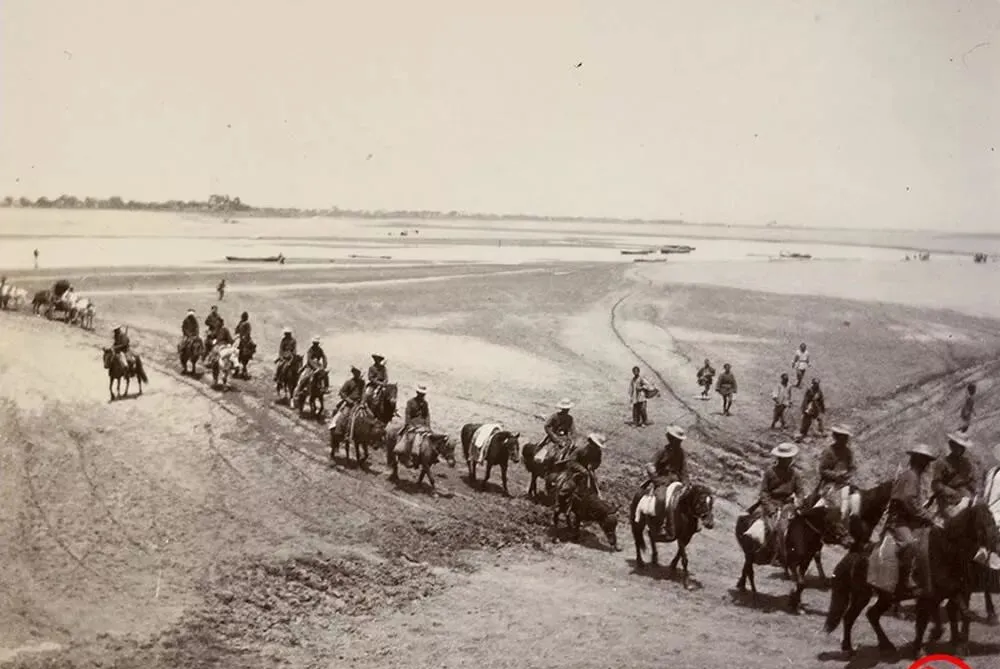 这列人马叫行营骑队,马尾甩着尘土,队形拉得细长,弯道处一折,像把钩子钩住了河滩,奶奶说那时候出远门得攒脚力,能有一匹驮着走的牲口就谢天谢地了,现在上高速一脚油门,河湾几转也就一盏茶的工夫。