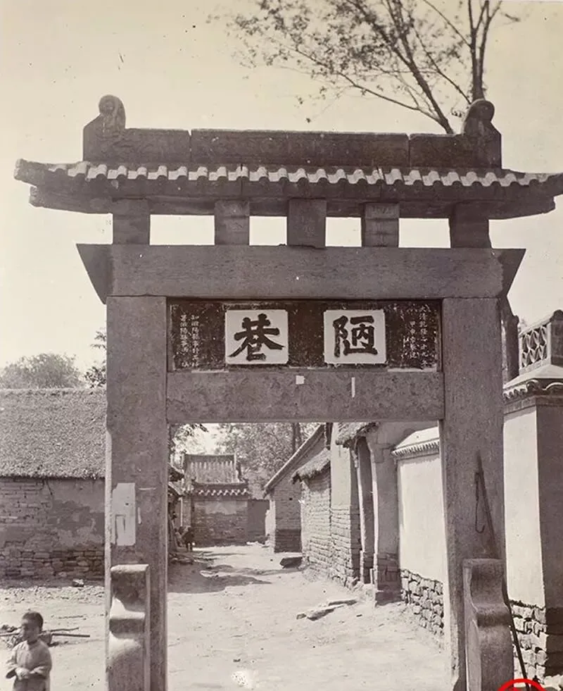 这个石门叫牌坊,额上三字深刻着旧气,梁端蹲着两只小兽,石脚被手心摸得发亮,巷子里墙面掉皮,秫秸顶的屋檐压得低,孩子赤脚跑过去,脚丫上都是土点点,以前过坊得正身,帽子要扶一扶,现在过门就是过门,谁还讲这么多虚礼。