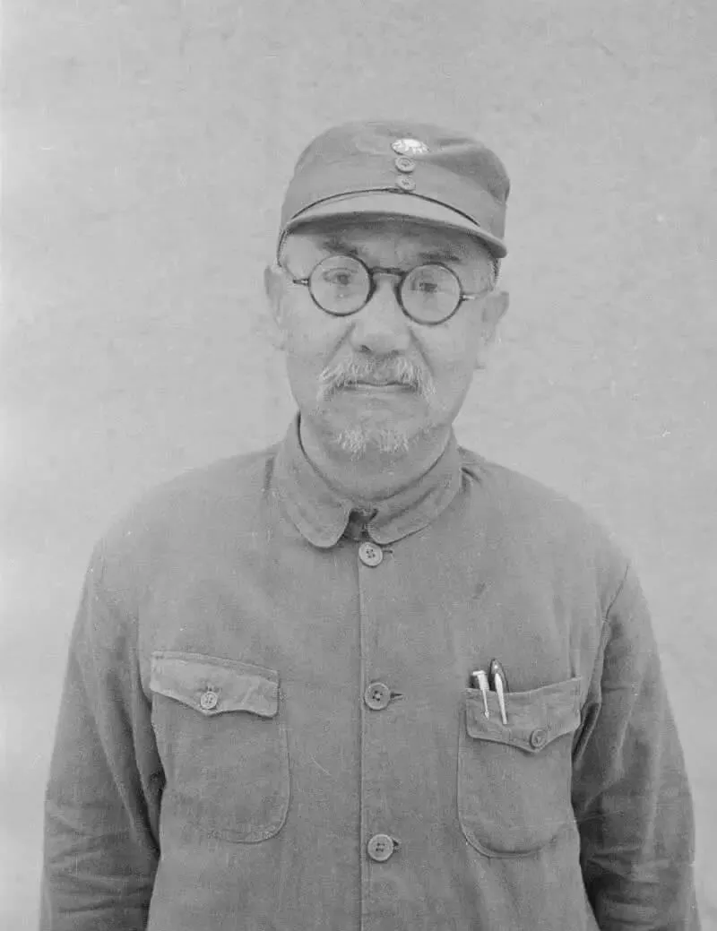 这张近景更清楚,这件旧军装口袋鼓着两支钢笔,扣子一颗不差,领子略塌,圆眼镜后面是有些疲惫的眼神,胡子花白,帽子扣得齐整,威风不在衣料上,只在肩头那点担当,照片会说话,能把人的劲儿从褶子里挤出来。