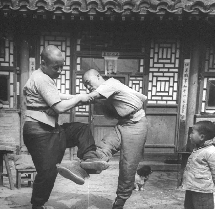 这个场面热闹,两个人扭作一团,小孩儿在一旁瞪圆了眼,院里砖地被脚掌踩得咚咚响,他腰间还束着布带,招式不讲究,靠的是蛮劲儿和痛快,他当年也算练过一身骨头,拉车之外,就拿这个解闷儿。